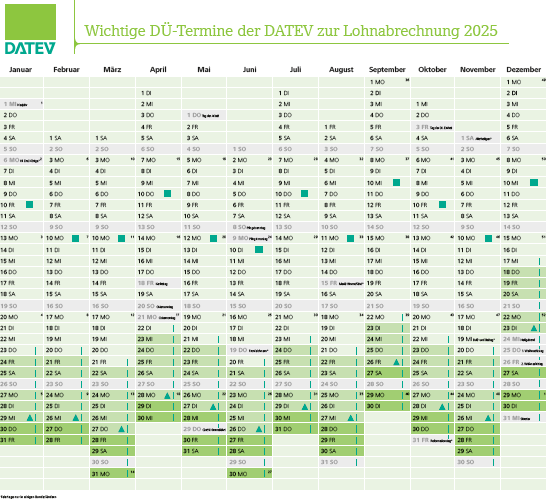 Frühabrechner – Schätzung empfohlen; Die Lohnabrechnung erfolgt zwischen dem sechstletzten und dem drittletzten Bankarbeitstag (inkl.) |